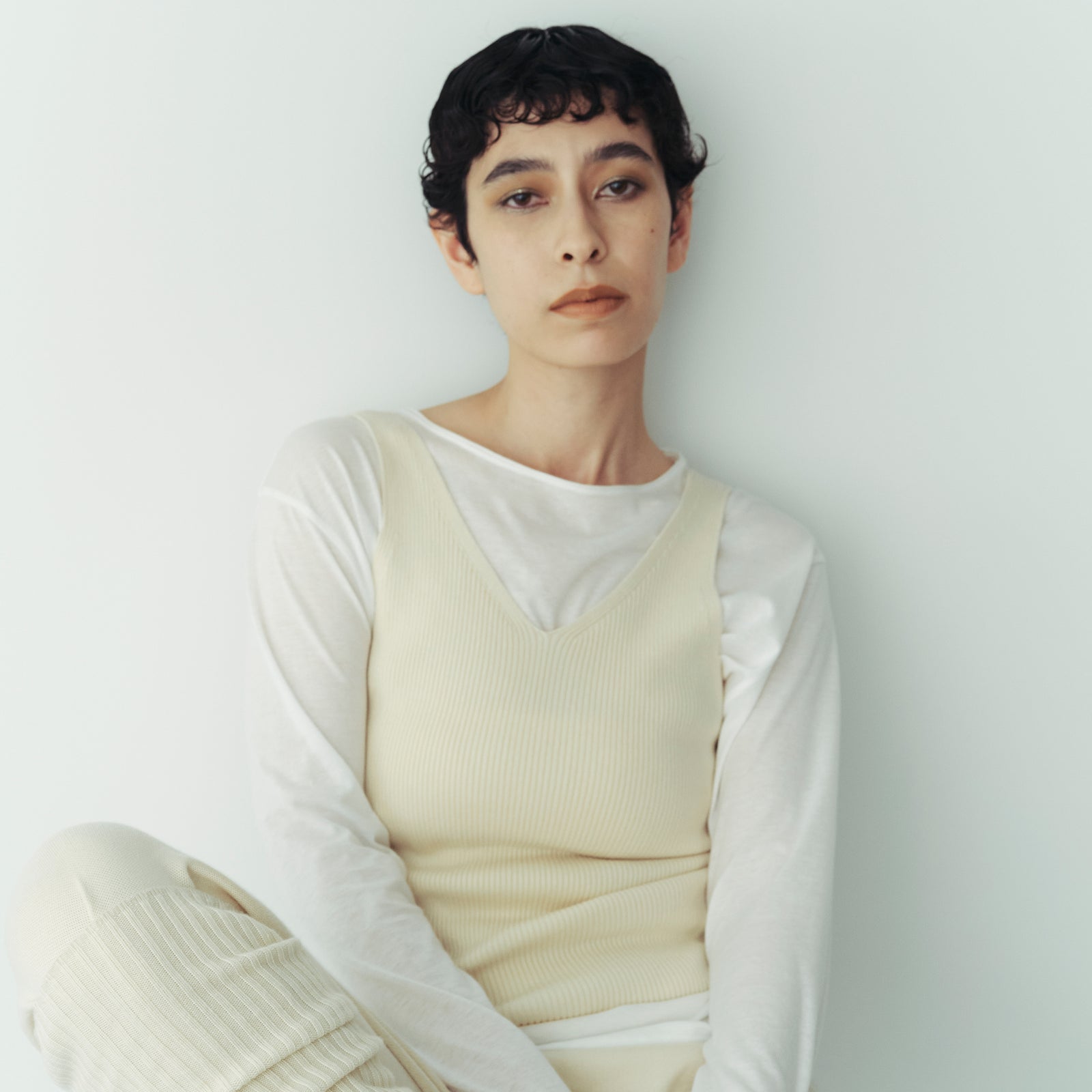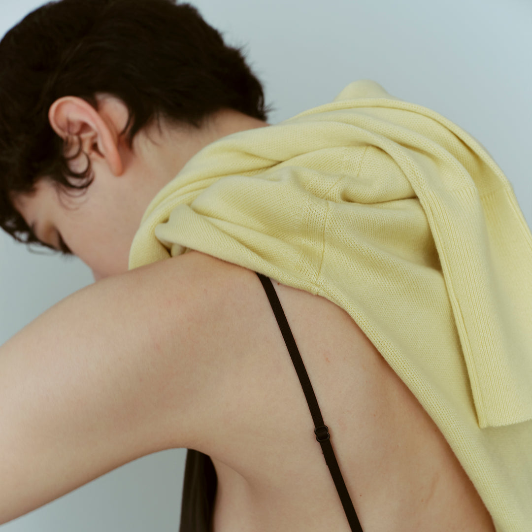 まるでカシミヤのような質感の糸で編んだ無縫製のニットタンク。