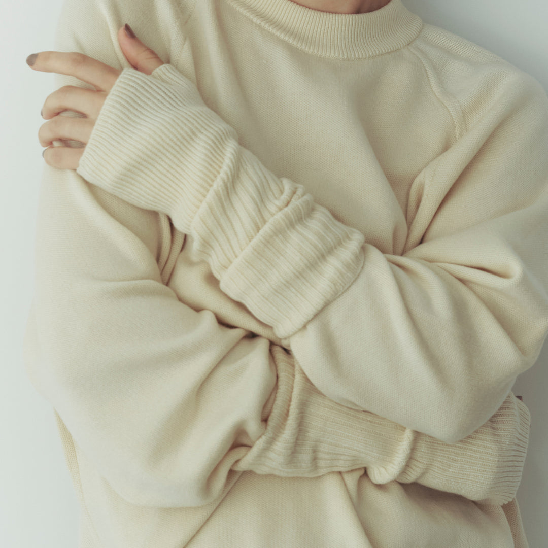 ボリュームのあるスリーブと長めの袖口リブがポイント。