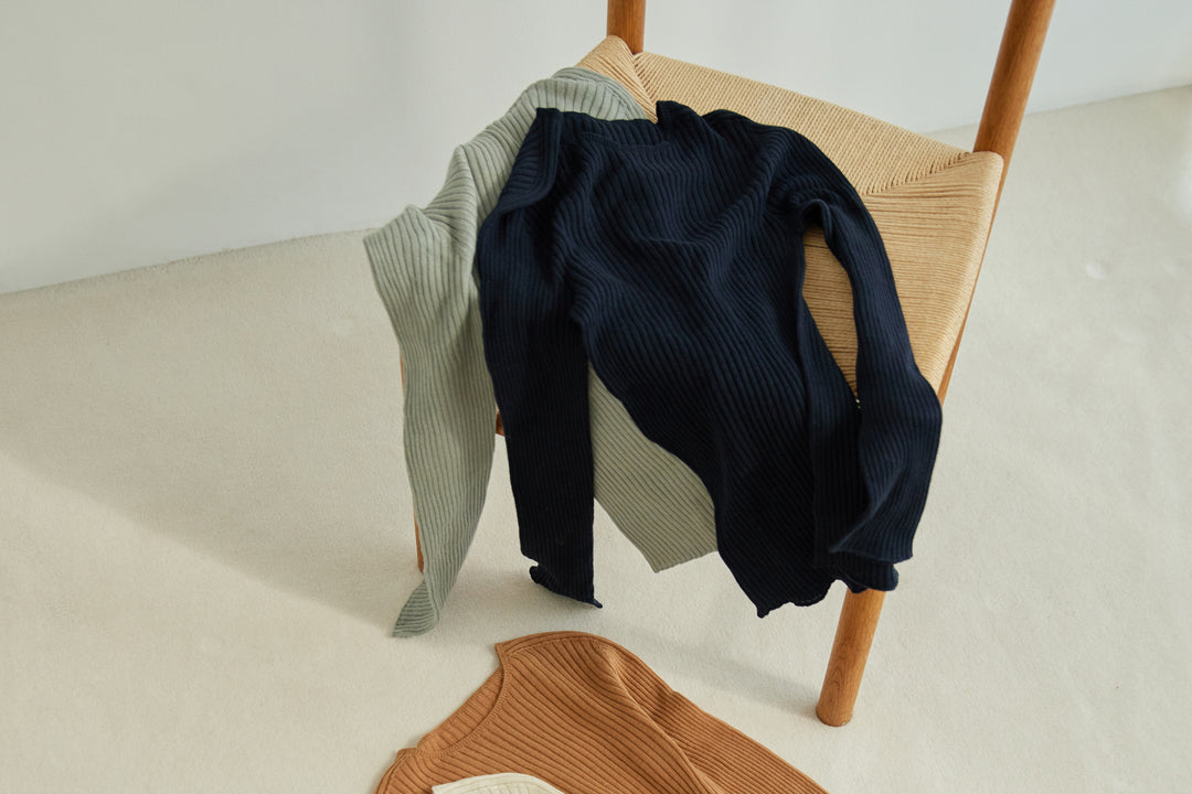 NETENE.のニットウェアは、柔らかな肌ざわりと調湿機能に