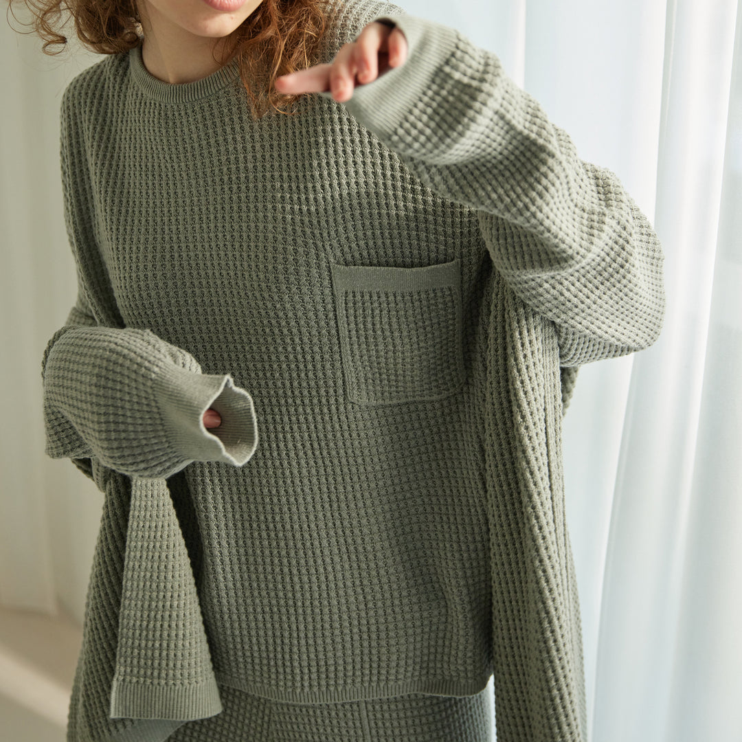 専用の機械で1着のウェアを編み上げられているので、生地のカットロスや縫い代といった原料ロスがなくなります。 NETENE.は、快適な着心地とともに、人と自然が寄り添って暮らしていけるような、優しくて温もりのあるニットウェアをこれからもお届けしていきます。